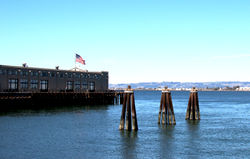 ![]() The San Francisco skyline featuring the Ferry Building | ![]() The San Francisco skyline as seen from Treasure Island | ![]() A pier in San Francisco near The Ferry Building |
